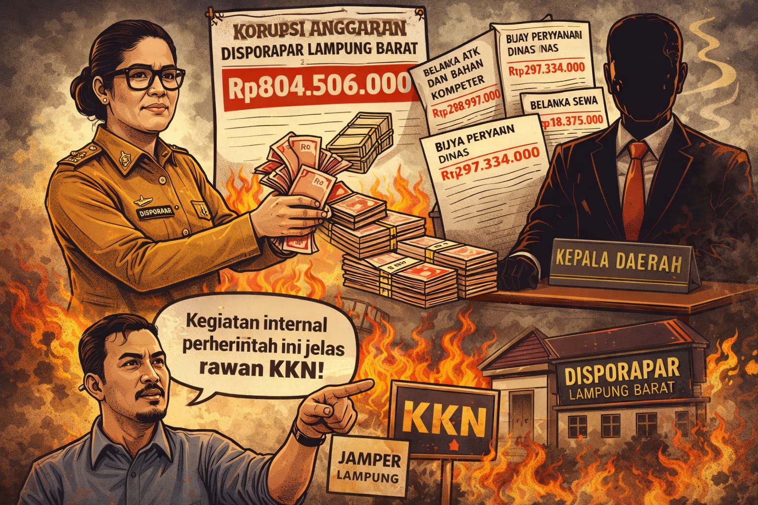 Lampung Barat — Dugaan penyimpangan anggaran di lingkungan Dinas Kepemudaan, Olahraga, dan Pariwisata (Disporapar) Kabupaten Lampung Barat pada Tahun Anggaran 2025 mengindikasikan adanya persoalan serius dalam tata kelola keuangan daerah. Berdasarkan hasil penelusuran awal, realisasi belanja yang bersumber dari APBD melalui mekanisme swakelola mencapai Rp4,2 miliar untuk 426 paket kegiatan. Namun demikian, struktur penggunaannya memunculkan indikasi kuat terjadinya inefisiensi hingga potensi penyimpangan anggaran.