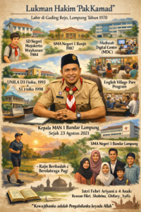 BANDAR LAMPUNG —– Tercatat lahir di Gading Rejo pada tahun 1970. Lukman Hakim banyak menghabiskan masa kecilnya di Kabupaten Way Kanan, sebuah wilayah administratif tingkat dua di Provinsi Lampung yang berbatasan langsung dengan Sumatera Selatan. Disana, anak kedua dari enam bersaudara ini menikmati masa kanak-kanak seperti pada umumnya.